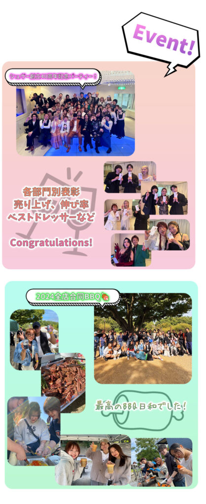 社内フォトコンテストテーマ【お客様がやってみたいカラーリング】※お客様にご協力いただきました。外部コンテスト【一生美容に恋する会 主催 恋’s contest】【(株)フジシン 主催 「CHANGE」変身動画グランプリ】過去イベントシュヴーコンテストその他過去のイベントその他、過去のイベントや雑誌掲載等の情報はこちら